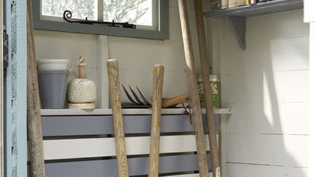 W aranżacji garażu często musi uwzględnić również miejsce na narzędzia ogrodowe i wszelkie akcesoria potrzebne w ogrodzie. Składzik wyposażmy w praktyczne uchwyty, dzięki czemu będziemy mieć pod ręką nasze ulubione grabie i motyki.