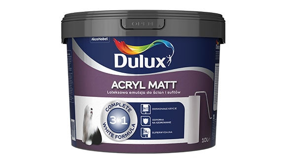 Świetnie do malowania sufitu i innych powierzchni we wnętrzu sprawdzi się także emulsja akrylowa Dulux Acryl Matt. Jej ogromną zaletą jest doskonałe krycie (według testów to numer 1 pod tym względem), a ponadto świetna wydajność (aż do 14 m2/l) oraz odporność na szorowanie i zmywanie.