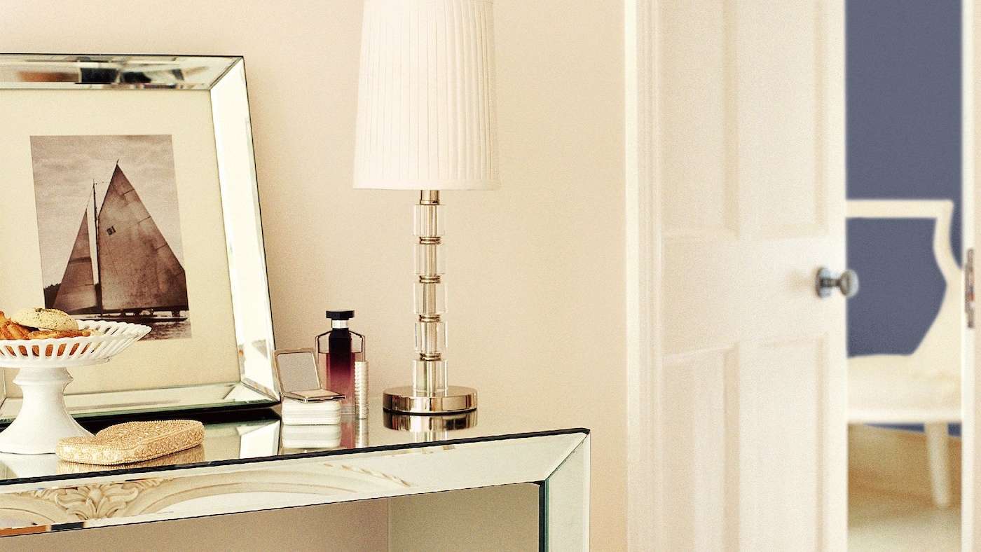 Przy poszukiwaniu kolorów do jasnego wnętrza w stylu glamour również możemy posiłkować się paletą Dulux Kolory Świata. Naturalnie w grę wchodzą odcienie bieli, ale raczej te zimne niż wpadające w żółcie – na przykład barwy inspirowane Kretą. Warto zainteresować się także szarościami z serii Skandynawia. Jeśli pomieszczenie ma mieć kobiecy charakter, można sięgnąć po jaśniejsze kolory z serii Prowansja - bliższe pastelom. W tej aranżacji również doskonale sprawdzą się wysokie listwy przypodłogowe i sztukaterie. Tutaj te elementy, łącznie z sufitem, powinny być białe.