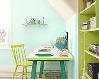 Neutralne tony pomagają w nauce, dlatego nasza paleta ponadczasowych kolorów doskonale pasuje do gabinetu. Łącz ze sobą różne barwy, by tworzyć ciekawe i zrównoważone efekty wizualne, stosując Kolory Roku Dulux Moc Ziemi.