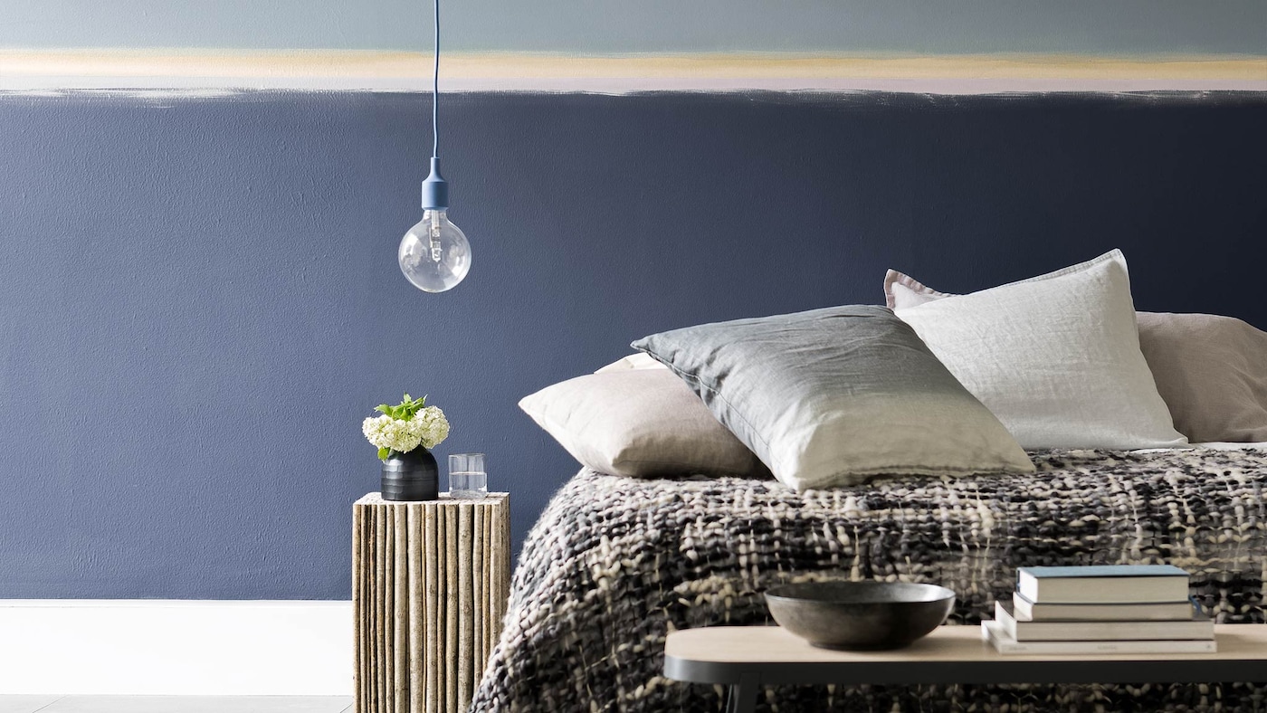 Stanęło na jednej, granatowej ścianie? W porządku! Miejmy jednak na uwadze, że również lokalizacja koloru we wnętrzu ma znaczenie. Doskonałym pomysłem jest pomalowanie na intensywniejszą, granatową barwę ściany za wezgłowiem łóżka. Dzięki temu dodatkowo zaakcentujemy strefę z łóżkiem, umieścimy ją w „centrum zainteresowania”. Granatowa ściana z łóżkiem będzie stanowiła ozdobę samą w sobie.