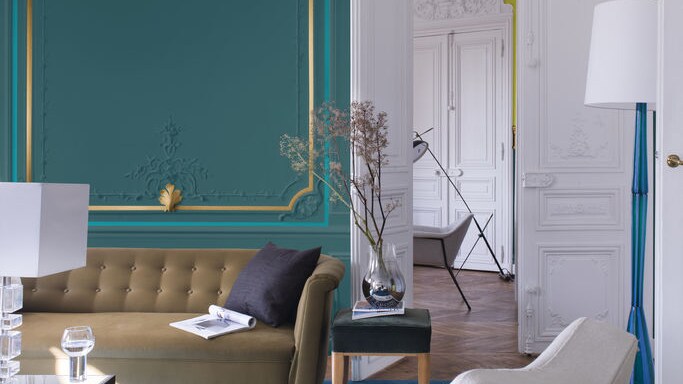 I jeszcze te kolory! Wyjątkowość, stylu eklektycznego w mieszkaniu podkreślimy odważnymi, nieco szalonymi odcieniami ścian. Pamiętajmy jedynie, że liczy się tu konsekwencja. Wybierzmy zatem jeden kolorystyczny motyw i potraktujmy go jako punkt wyjściowy dla ścian – może to być charakterystyczne czerwone krzesło (na tle ściany pomalowanej na kolor Namiętność Carmen z Kolorów Świata Dulux) lub oryginalna lampa na turkusowej nóżce (będzie świetnie komponować się z odcieniem Turkusowy Klif). Niebanalnym rozwiązaniem są również zdobienia, sztukateria, szczególnie pomalowana na kontrastujący odcień (jak złoty czy miedziany). Oczywiście, z użycia nie wychodzą też jasne beże i pochodne bieli (jak Antyczny Marmur), tworzące neutralne tło dla mebli.